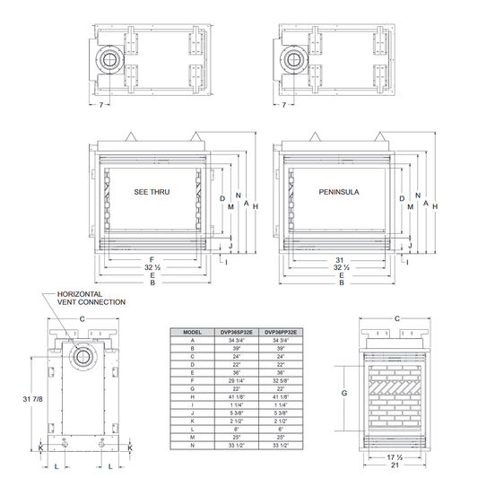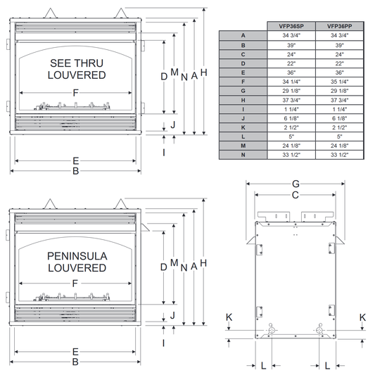 Empire Vail Premium 36 Peninsula and See-Thru Vent Free Gas Fireplace - VFP36
