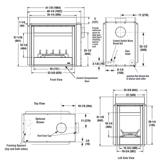 Superior 40 Inch Direct Vent Traditional Peninsula Gas Fireplace - DRT40PF