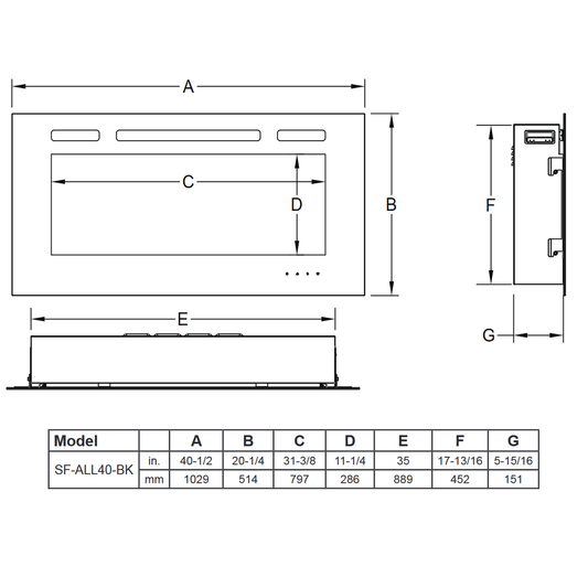 SimpliFire Allusion 40 Inch Wall Mounted Electric Fireplace - SF-ALL40-BK