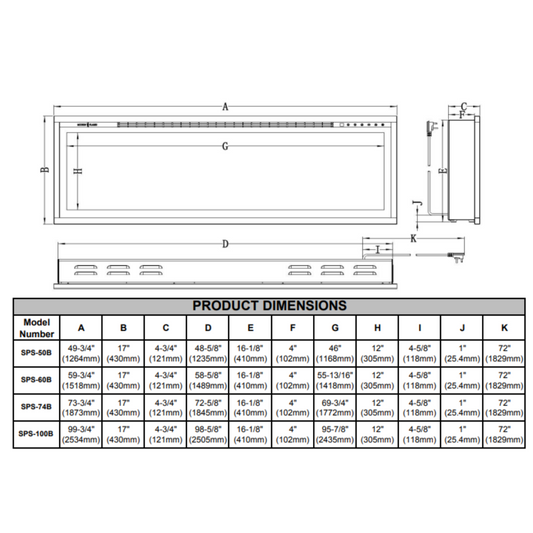 Modern Flames Spectrum 100 Inch Slimline Series Electric Fireplace - SPS-100B