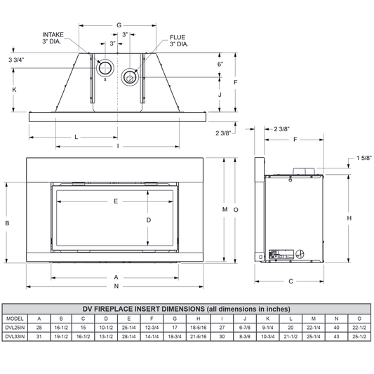 Empire Loft Medium Direct Vent Gas Insert - DVL33IN
