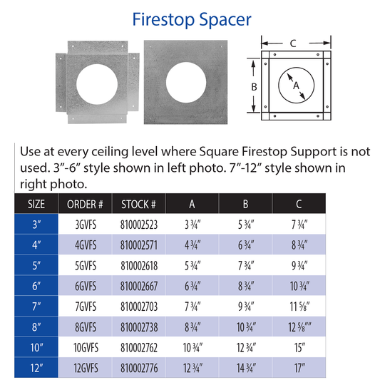 DuraVent Type B Square Firestop Support - 4GVRS