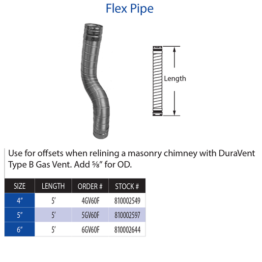 DuraVent Type B 60 Inch Flex Pipe - 6GV60F