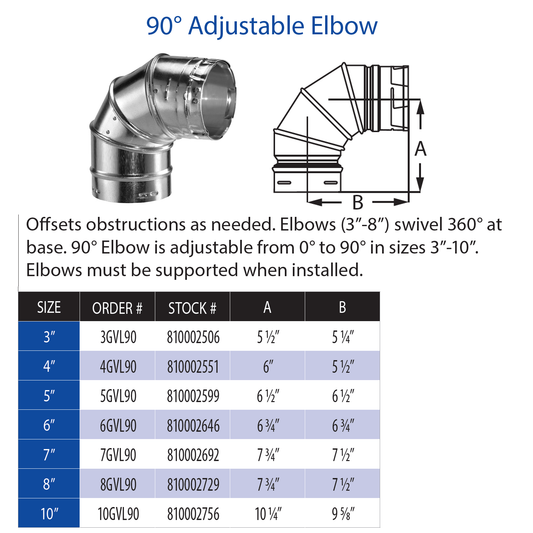 DuraVent Type B 90 Degree Adjustable Elbow - 4GVL90
