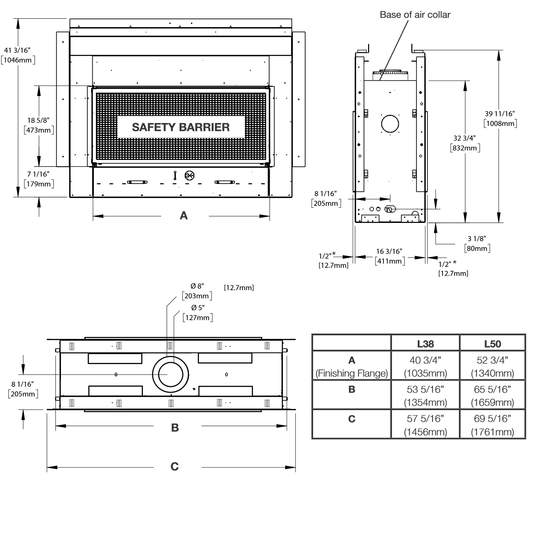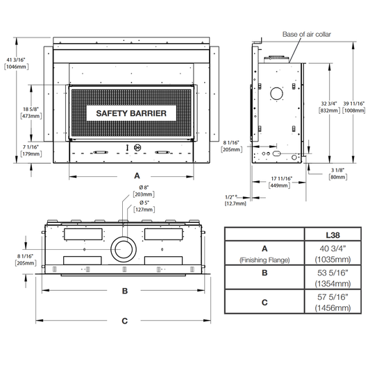 Napoleon 5 inch 3-4 Piece Trim Kit for Element 36 Electric Fireplace - NEFB36H-BS-TRIM
