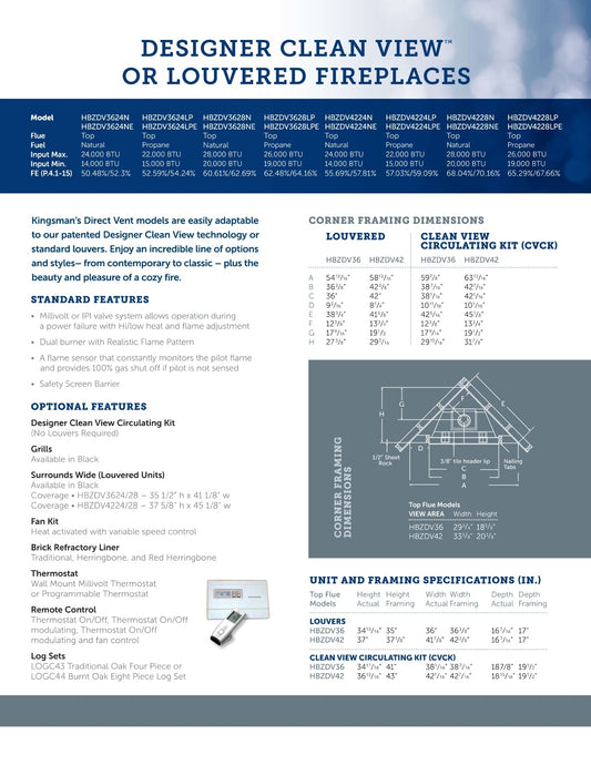 Kingsman ZCV 36 Clean-Face Direct-Vent Gas Fireplace - ZCV3622