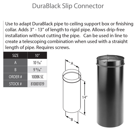 DuraVent DuraBlack 10 Inch Diameter Black Slip Connector - 10DBK-SC