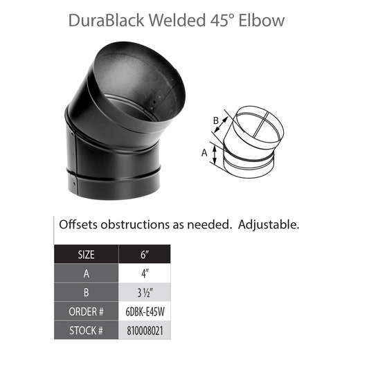 DuraVent DuraBlack 6 Inch Diameter Black 22 Gauge 45 Degree Elbow - 6DBK-E45W