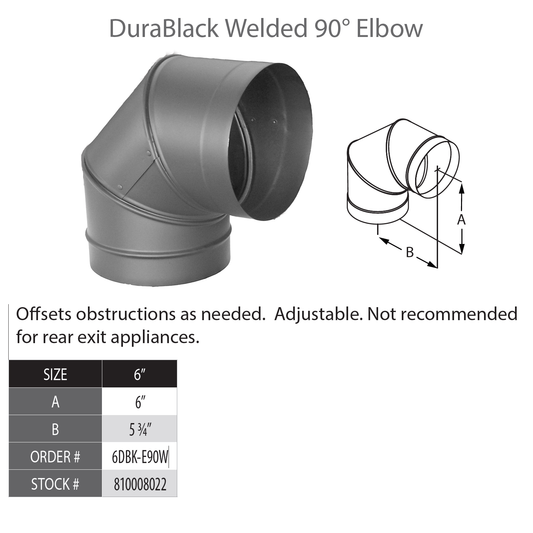 DuraVent DuraBlack 6 Inch Diameter Black 22 Gauge 90 Degree Elbow - 6DBK-E90W
