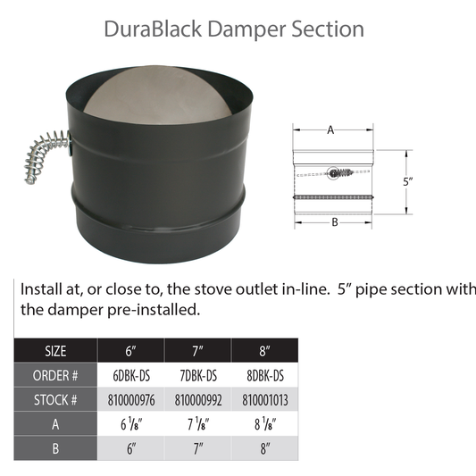 DuraVent DuraBlack 7 Inch Diameter Black Damper Section - 7DBK-DS