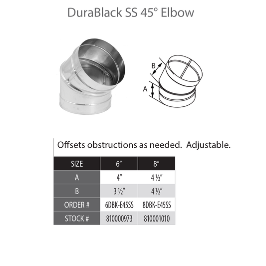DuraVent DuraBlack 6 Inch Diameter Stainless Steel 45 Degree Black Elbow - 6DBK-E45SS