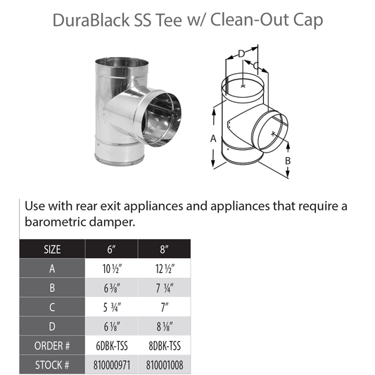 DuraVent DuraBlack 6 Inch Diameter Stainless Steel Tee w/Clean-Out Cap - 6DBK-TSS